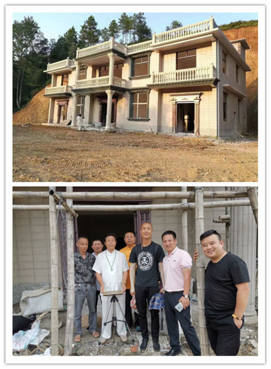 019年12月23日下午第二站是谢师父瑞金瑞林镇新建的祖屋,房子刚落成,外围棚架还没拆,院子围栏围墙门楼还带设计,此次师父带领众弟子前往学习阳宅的立线分金,以及修建过程的每个细节。