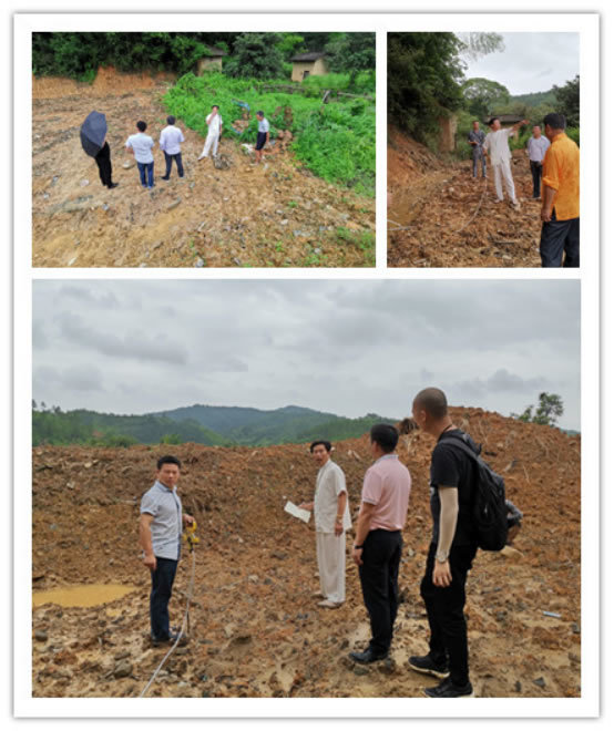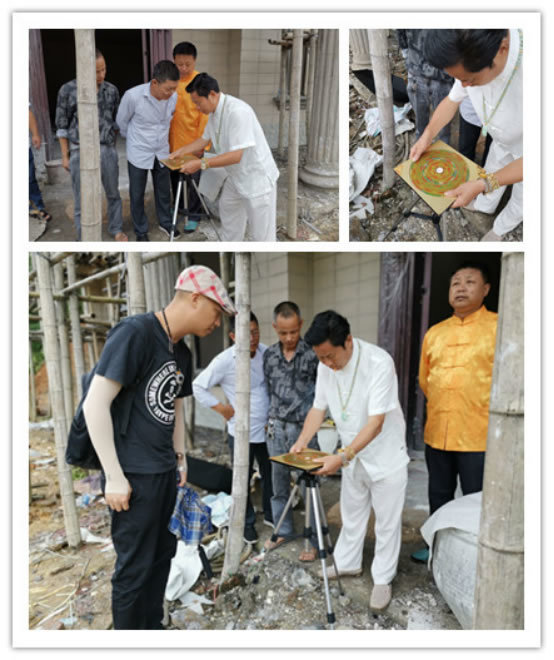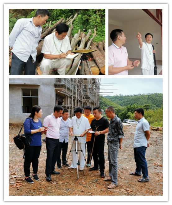 弟子们跟随谢师父在为客户看新建别墅的风水。