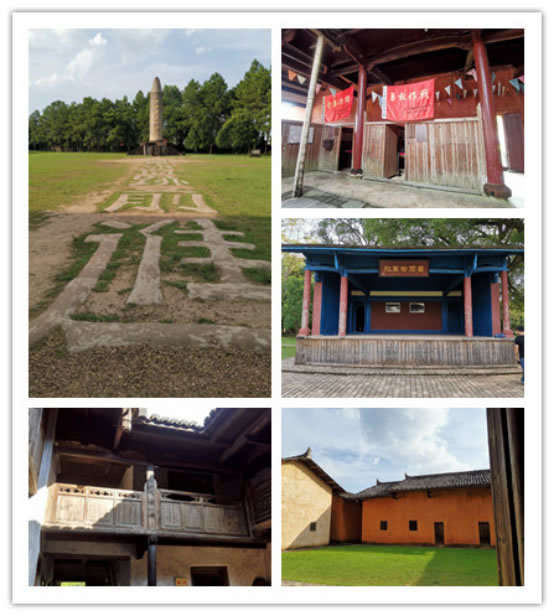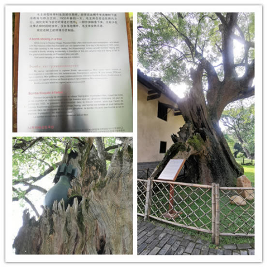 叶坪红色旅游景区位于瑞金市叶坪乡叶坪村,距瑞金市中心区6公里,在瑞金城市规划区范围内,占地面积160余亩,是全国保存最为完好的革命旧址群景区之一。景区内现保存着革命旧址和纪念建筑22处,其中16处是全国重点文物保护单位。主要景点有:第一次苏维埃代表大会旧址、中共苏区中央局旧址、博生堡、公略亭、红军烈士纪念塔、红军烈士纪念亭、红军检阅台等。图中这棵大树毛主席曾经坐在树下看书,敌军的炮弹打中大树,却被树干卡住没有点下来,毛主席安然无恙,这棵树目前重点保护文物之一。