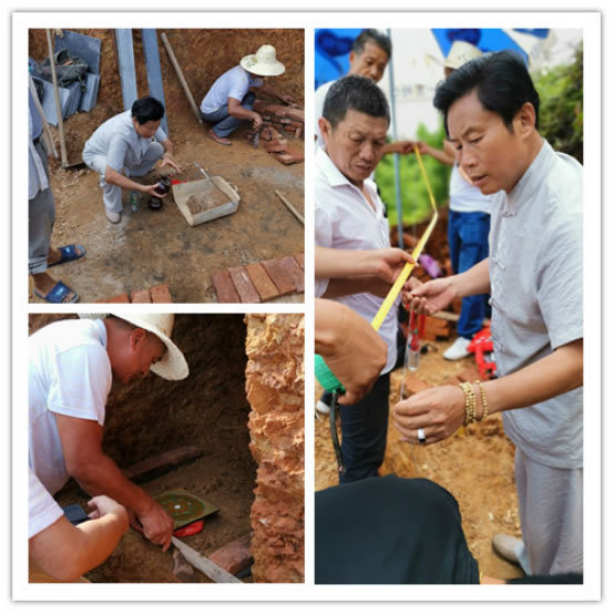 2019年6月24游学第一天,弟子们跟随师父到师父家正在修建的祖坟,学习阴宅的立线分金,把在课堂上学到知识应用到实际中。此次游学主要内容是跟随师父在修建祖坟的过程中详细学习阴宅建造的整个过程,这是非常难得的经验!